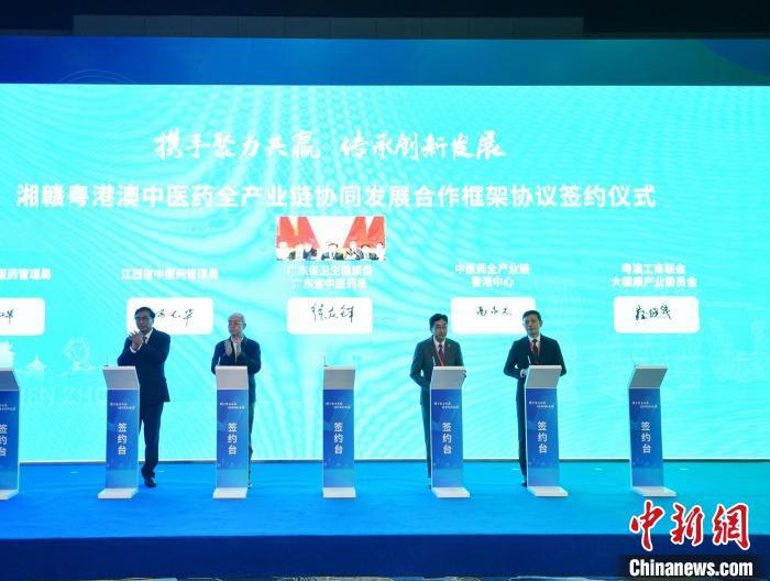 此次,湖南、江西、广东三省政协领导,香港特别行政区、澳门特别行政区相关机构负责人共同签署了《助推湘赣粤港澳中医药产业协同发展框架协议》;湖南、江西、广东三省中医药管理部门负责人,香港特别行政区、澳门特别行政区相关机构负责人共同签署了《湘赣粤港澳中医药全产业链协同发展合作框架协议》。
